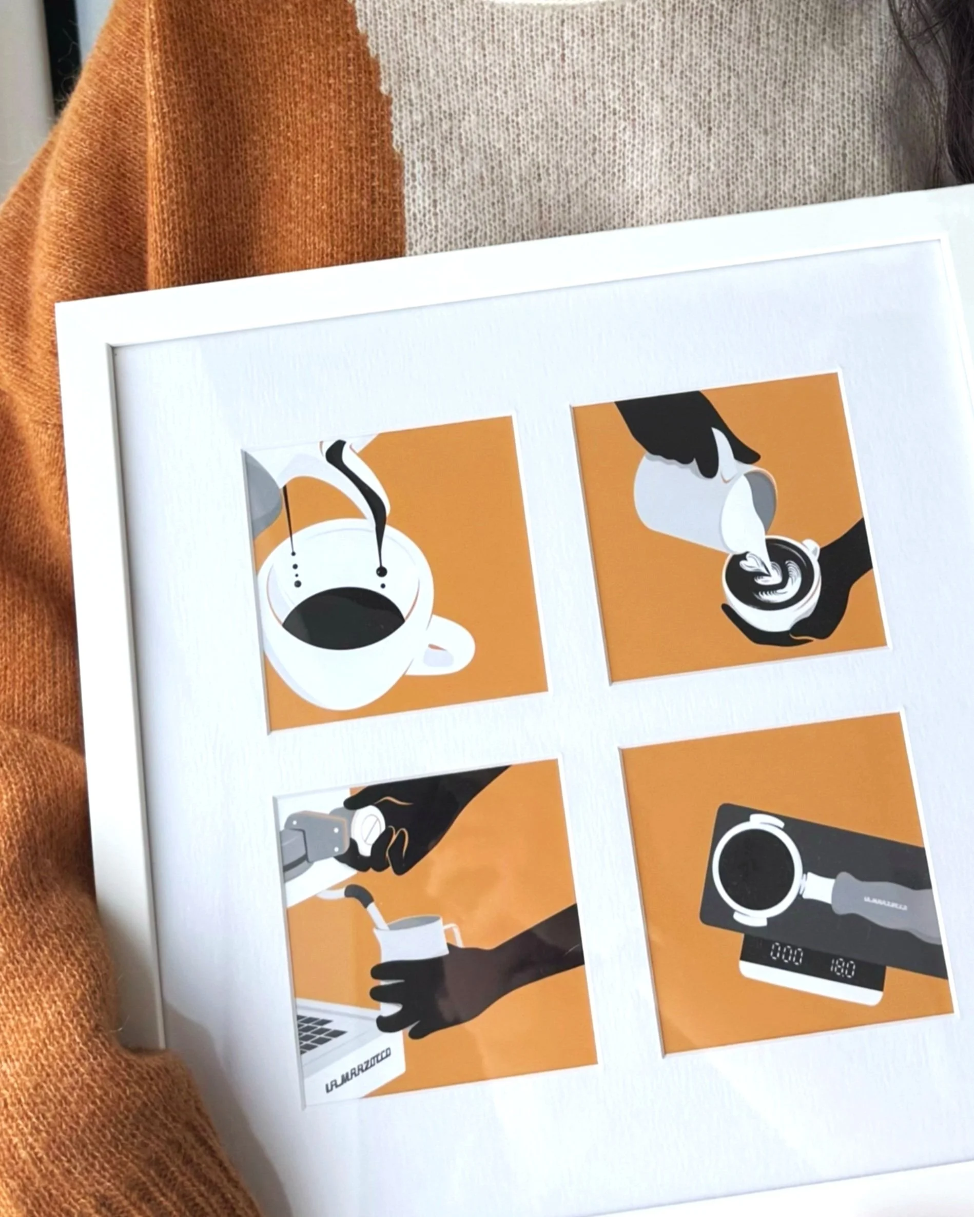 An editorial illustration series for La Marzocco Home, visualizing the history and cultural evolution of the espresso break — from its fast-paced Italian café origins to today’s mindful home rituals.